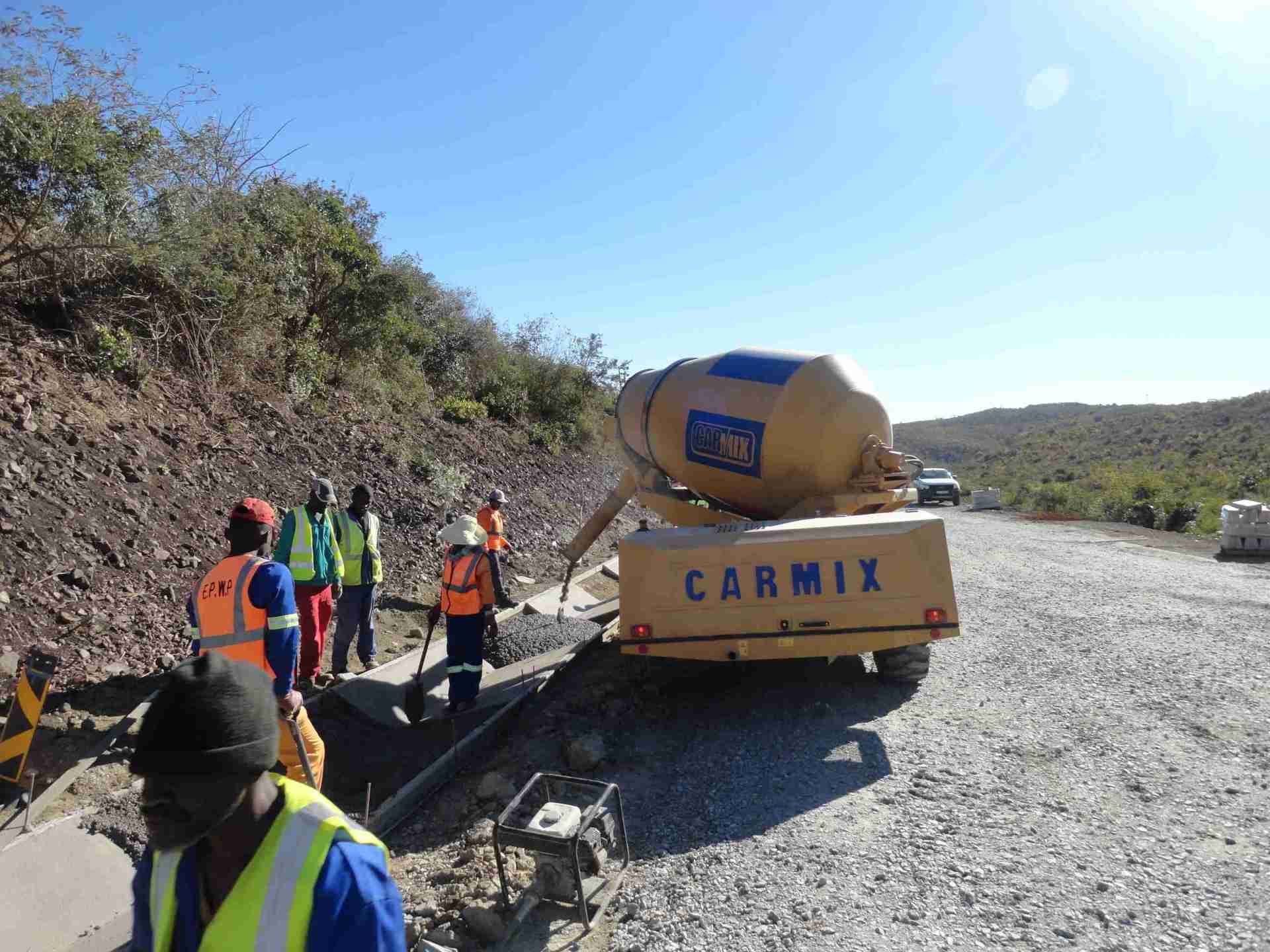 Recently 1 Carmix 3500TC unit was in action in supplying all the concrete for an 18km stretch of road in Pongola, KZN. The upgrades of the road included new culverts, V-drains and piping infrastructure to be laid over the 18km stretch. Due to the vast distance, the mobility of the Carmix 3500TC proved highly beneficial, allowing for 2km of V drains to be complete each day.